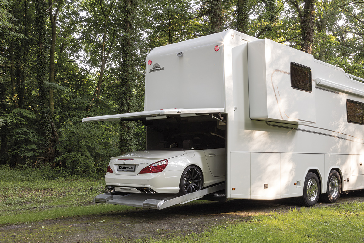 As the close-up widens, the revelation of a garage within the mobile home steals the spotlight. Designed to accommodate two supercars, this feature transforms the travel experience into a seamless blend of opulence and adventure. The notion of carrying one’s prized automobiles adds a unique layer of exclusivity to the journey.