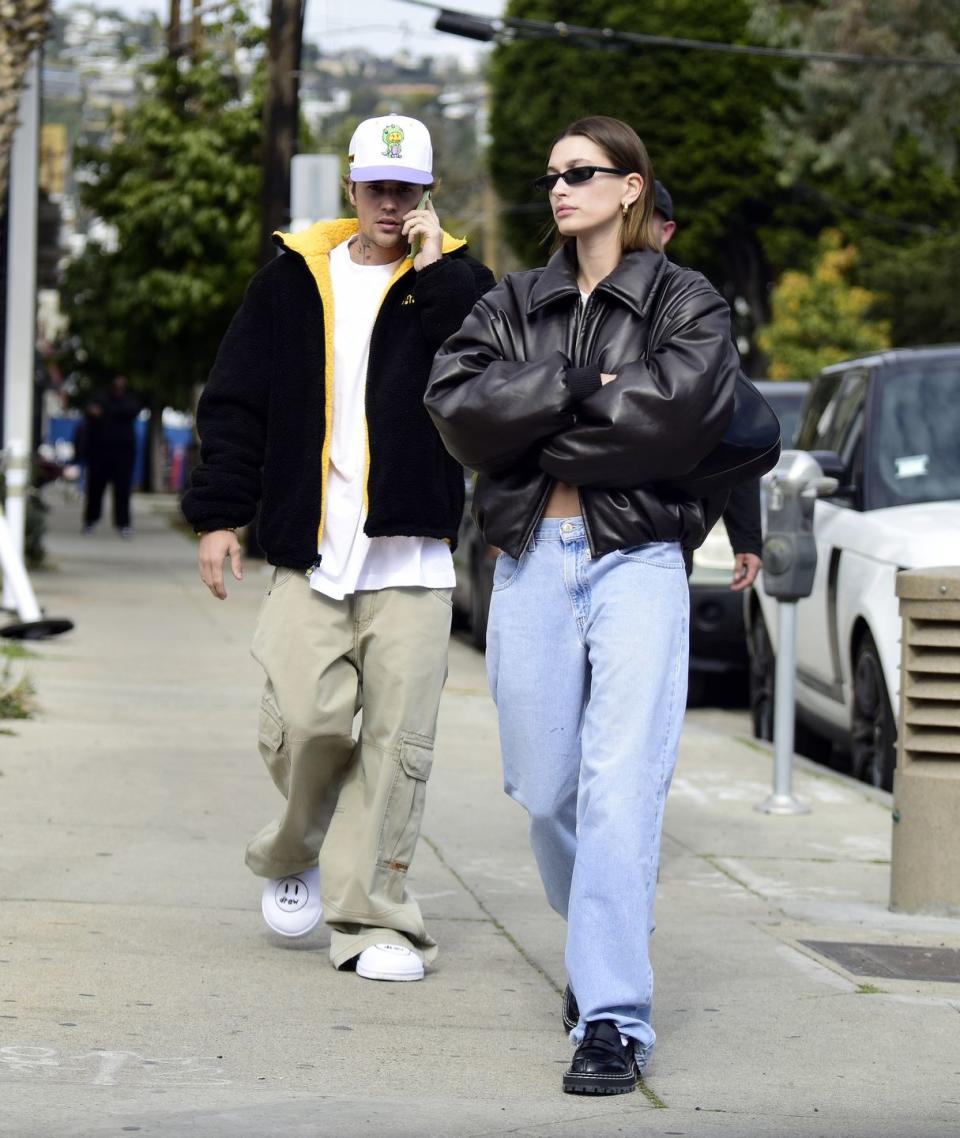 Hailey Baldwin, recognized as a style icon in her own right, complements Justin’s cool aesthetic with her leather ensemble. Her fashion-forward choices continue to garner attention, and in this close-up, she radiates an elegance that perfectly balances the edginess of the leather pieces.
