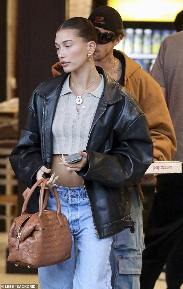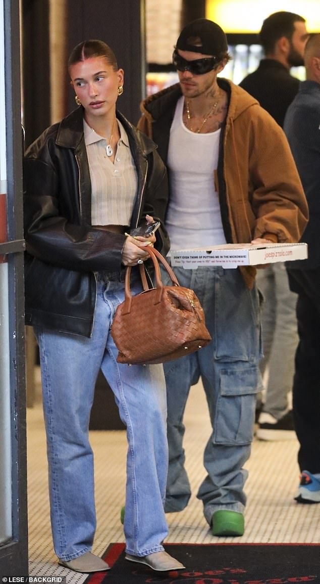 Join Justin and Hailey Bieber on a delightful pizza date in LA as they opt for casual fashion, marking the celebration of their fifth wedding anniversary. The camera captures the couple’s laid-back yet chic style, epitomizing the effortless grace that defines their love story.