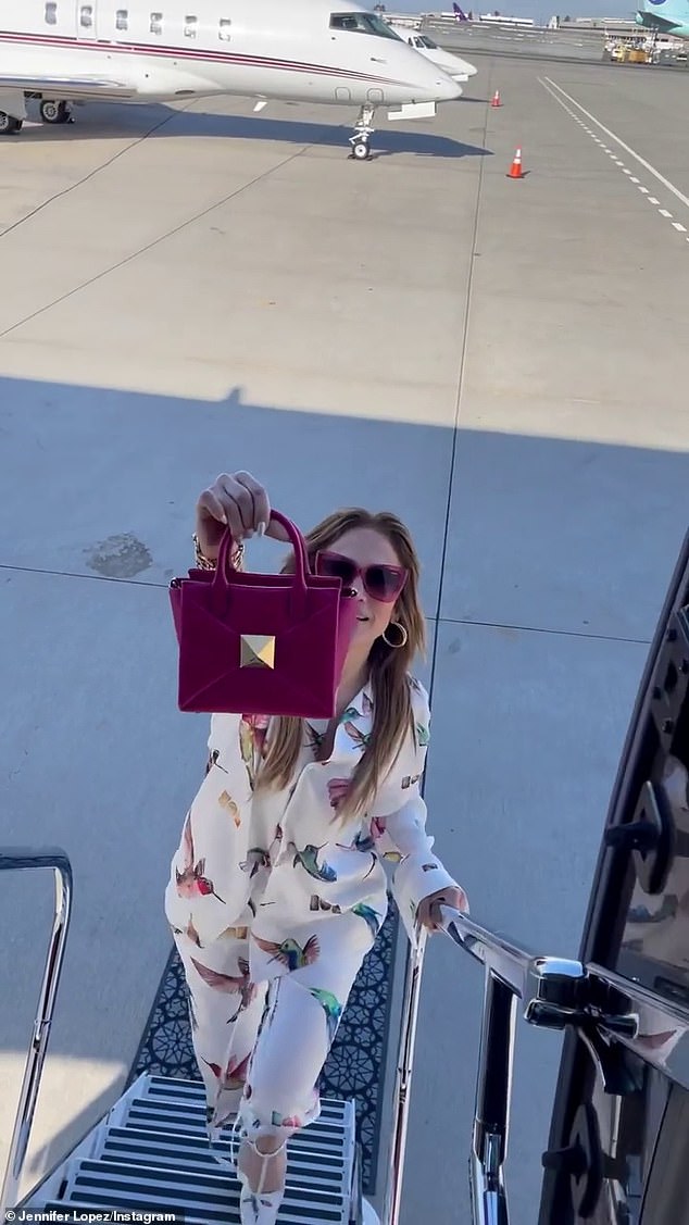 Jennifer Lopez, the multi-talented diva known for her impeccable style, recently transformed the tarmac into a high-fashion runway as she showcased her sartorial prowess while preparing to board a private jet. Her choice of attire, a stunning silk suit paired with a luxurious $2,800 purse, left no doubt that she was making a glamorous statement even before taking to the skies.